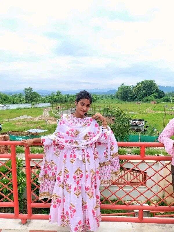 Kurta Color: White with Pink Floral Print