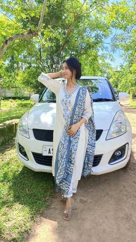 Women’s Ethnic Embroidery Top, Pant & Dupatta Set – Khadi Cotton | Flat 50% OFF | FREE GIFT 🎁